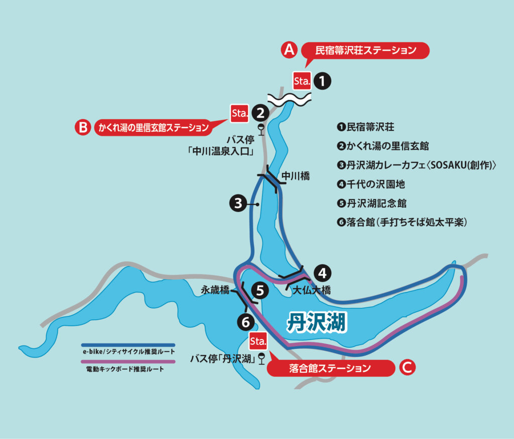 「宮ヶ瀬湖」と「丹沢湖」周辺地域を巡る2つのコースがあり、ポイントは“エコモビリティ”と呼ばれる、自転車や電動キックボードといった“脱炭素モビリティ”を使って巡ること*。