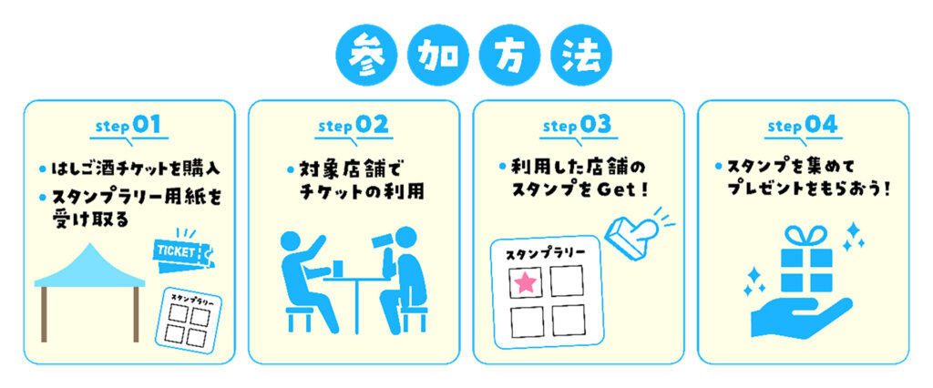 | 開催時間 | 【はしご酒チケット販売ブース/ラリー景品引き換え】 1日(金)/16:00~21:00 2日(土)・3日(日)/11:00~21:00 *フード・ドリンクの提供時間は各店舗の営業時間に準ずる |