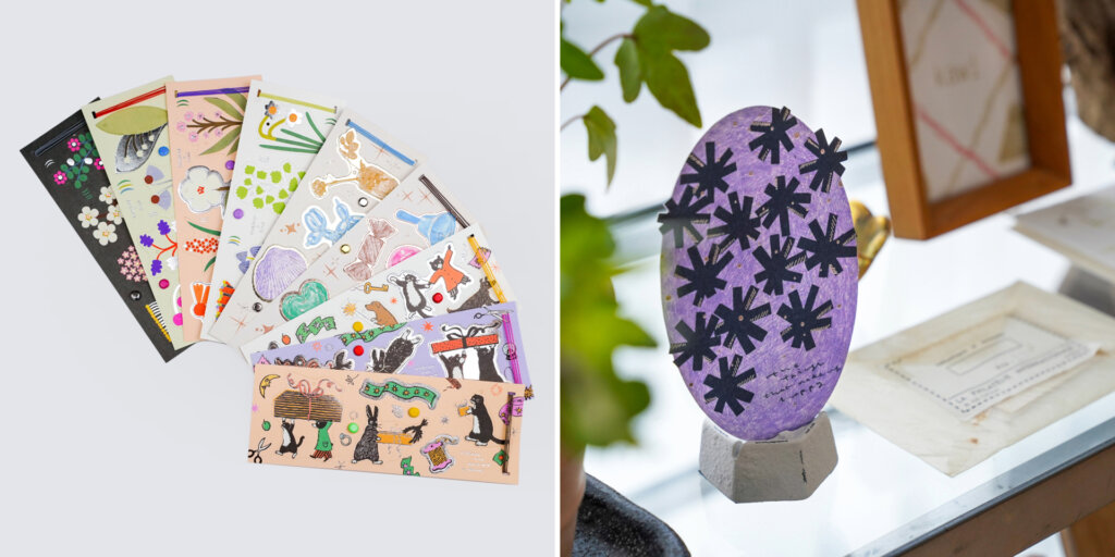 普段の生活で目にする機会の多い、身のまわりの品などからヒントを得。独自のパターンで仕上げた、味わいのある“紙もの”を生み出しています。