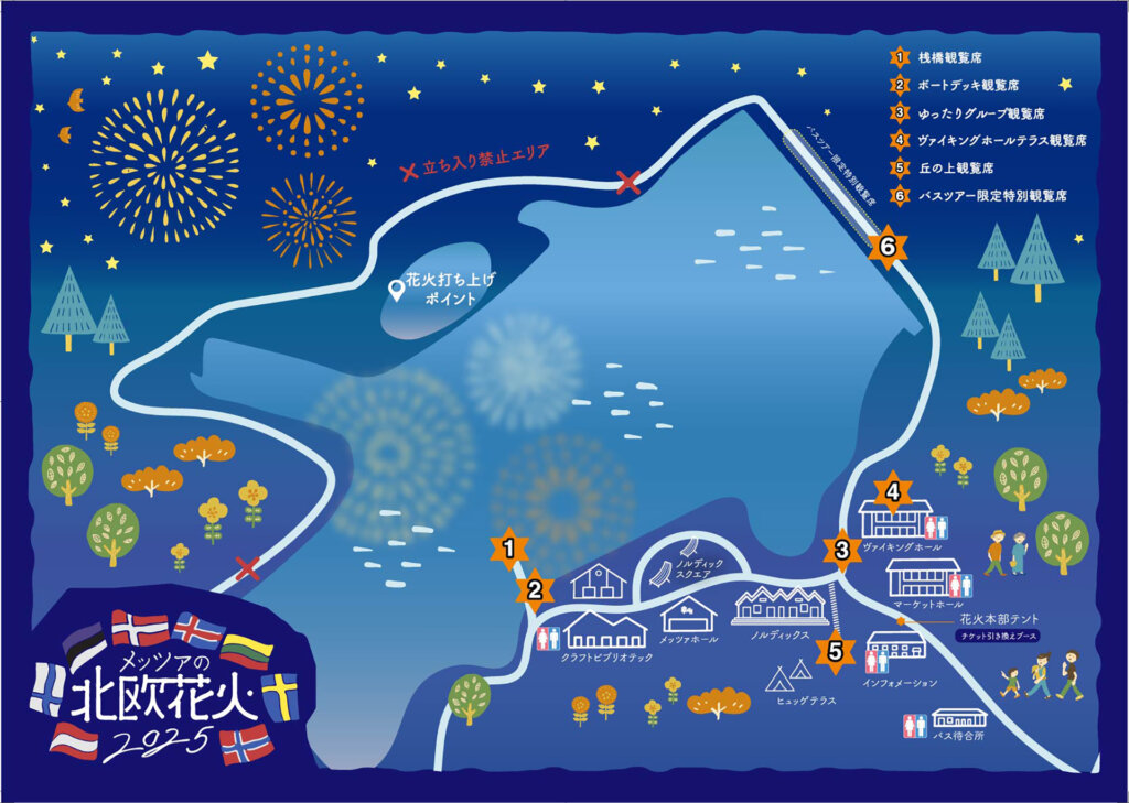 北欧各国の国旗色をイメージした花火が、宮沢湖の夜空に舞い上がります。打ち上げ数は非公表ですが、思い出に残るイベントとなることは間違いなし!