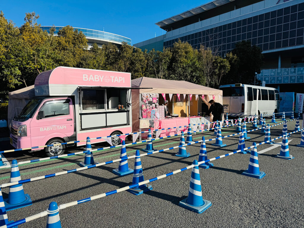 8月3日(日)には、ピンクの「ベビタピキッチンカー」が特別出店。出勤メンバーとして「あみか」さんと「きょんぺいカップル」さんが来園されます!!