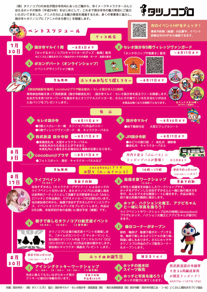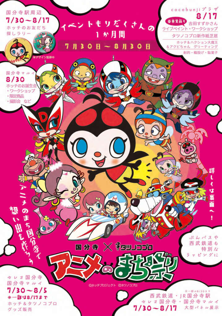 市内に本社があったほか、市のイメージキャラクター「ぶんじほたるホッチ」の制作などを手掛けるなど、国分寺市と縁が深い、アニメ制作会社「タツノコプロ」と共催で実施されるイベントです。