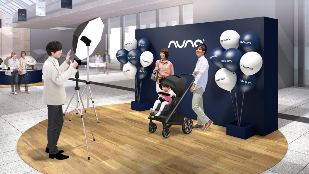 ブース内には特設フォトスタジオが用意されており、来場記念にプロカメラマンが写真を撮影してくれる家族向けサービスも。