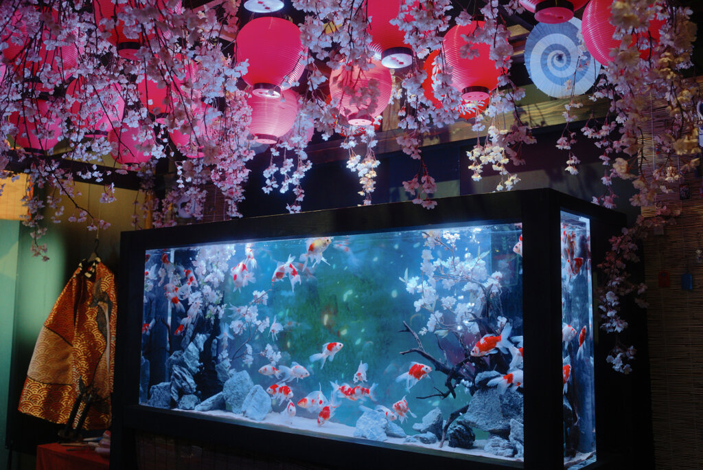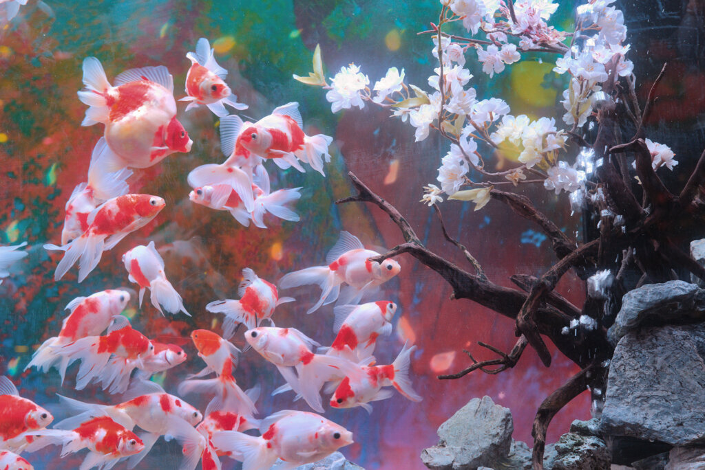 ・桜にちなんだ金魚などを特別演出で鑑賞