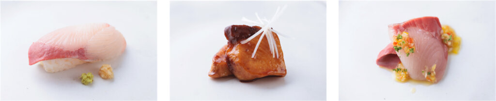 会場では、ニッスイのグループ会社でありブリの養殖を行っている「黒瀬水産」が育てた、「黒瀬ぶり」を使った「にぎり寿司」「照り焼き」「カルパッチョ」の3品をワンプレートで提供。