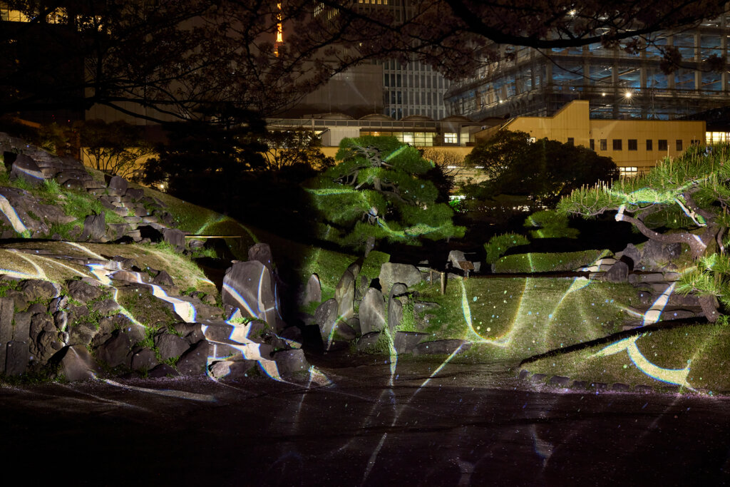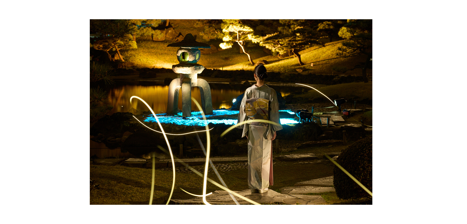 庭園全体のライトアップだけでなく、景石、築山、池、浜、島など、様々な場所に光をスポット的に照射。庭園の代表的な景観スポットである「大泉水」などを、4日間限定で幻想的に彩ります。