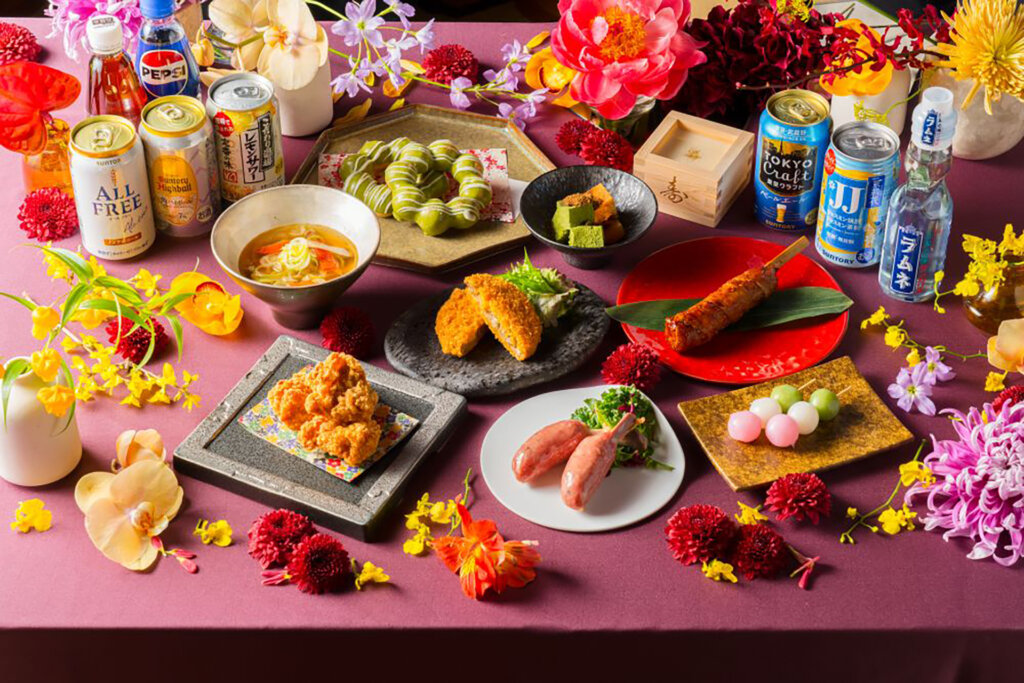 夜会限定の特別な料理の提供もあり。お団子やドーナツなど、会場でしか味わえない軽食とともに、特別な夜をお楽しみあれ。