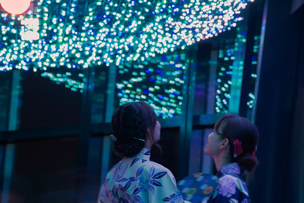 2万9000発ものLEDの光が夜空に舞う、夜景とイルミネーションの幻想的な競演「天の川イルミネーション」(実施:6月12日~9月23日)を筆頭に、メインデッキ1階には、特設の短冊飾り棚を用意。色とりどりの短冊に願い事*を書くことが可能です(実施:6月28日~7月7日)。