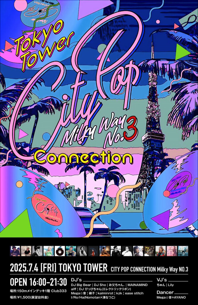 さらに7月4日には、「夜景×シティポップ」の懐かしい音色が空間を包み込む特別企画「TOKYO TOWER CITY POP CONNECTION Milky Way No.3」を開催。メインデッキへの入場料金のみで、どなたでもお楽しみいただけます♪