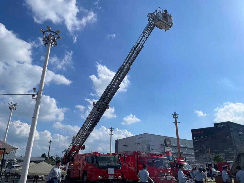 地元消防本部、警察署の「はたらくくるま」が複数やってくるほか、手軽にDIYを楽しめるワークショップの実施、2歳から乗れるキッズカートのほか、ティラノサウルスの着ぐるみレースや、アメリカンフットボールチーム「オービックシーガルズ」の専属チアリーダーによるパフォーマンスなど、見所満載です。