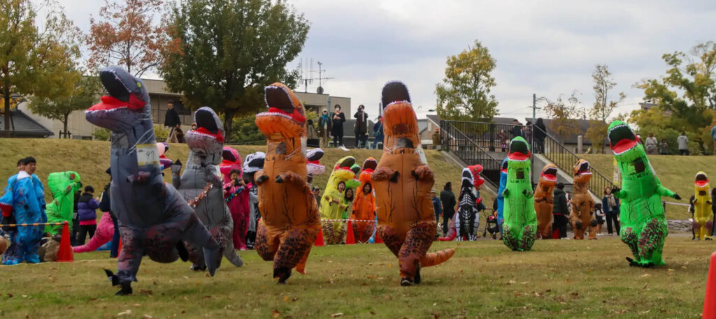 ・ティラノサウルスの着ぐるみレースや、チアのパフォーマンスも!