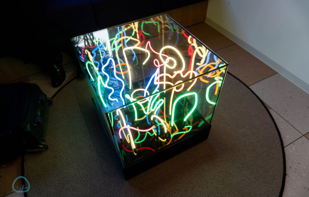 今回のリニューアルにあわせ、1Fロビーに巨大な壁画アートをなんとライブペインティングで仕上げられたほか、ネオン製造の老舗企業「アオイネオン」とコラボした作品を入り口脇などに展示。