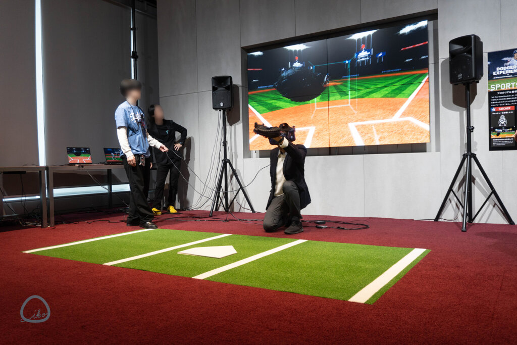もう1つがXR技術を使った、ドジャースタジアム疑似体験。グリーンで囲まれた専用エリアに入り、マウンドやバッターボックスに立ち、球場で選手になった気分を味わえるというもの。