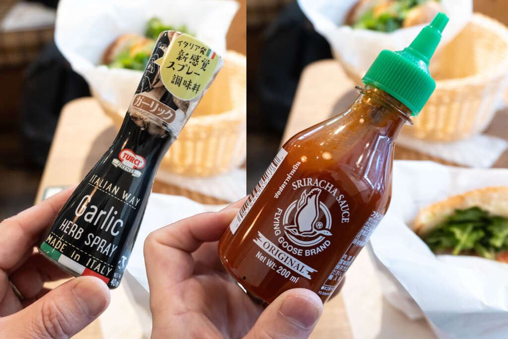 担当者によると「《バインミー》には「シラチャーチリソース」(写真右)、《グリーンカレー》には「ガーリック」(同左)がおすすめ」とのことです。