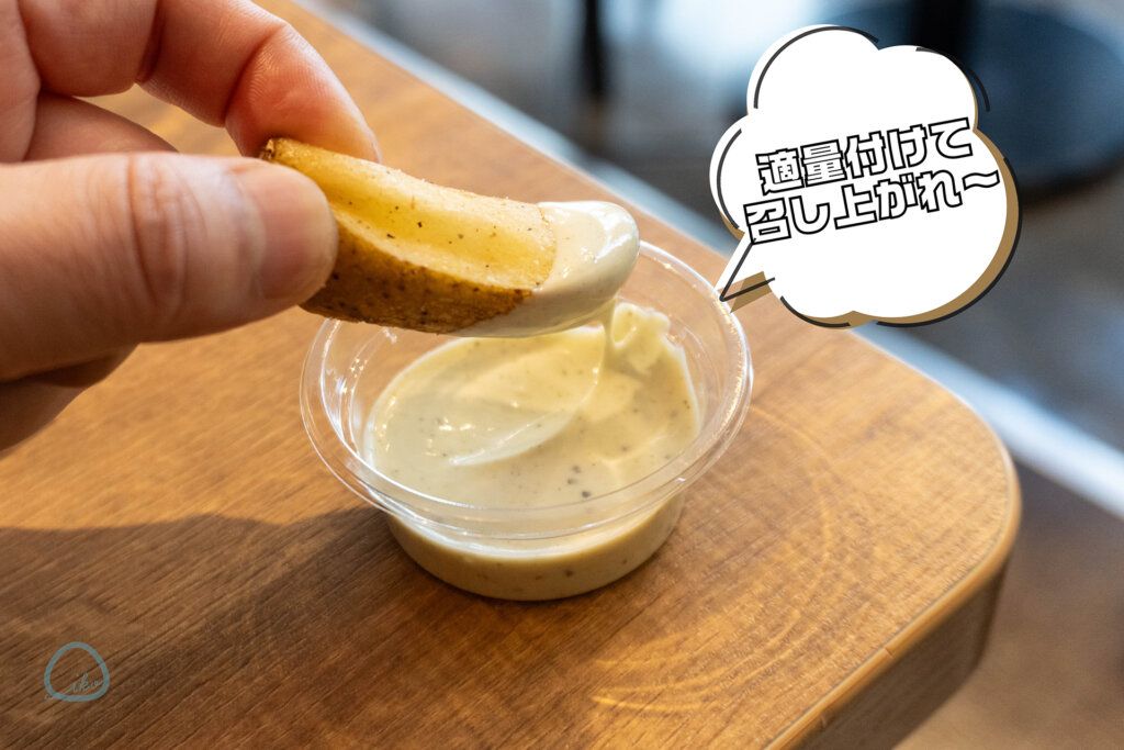 ディップはポテトだけでなく、バーガーにも少し垂らしてみるのもおすすめとのこと。
