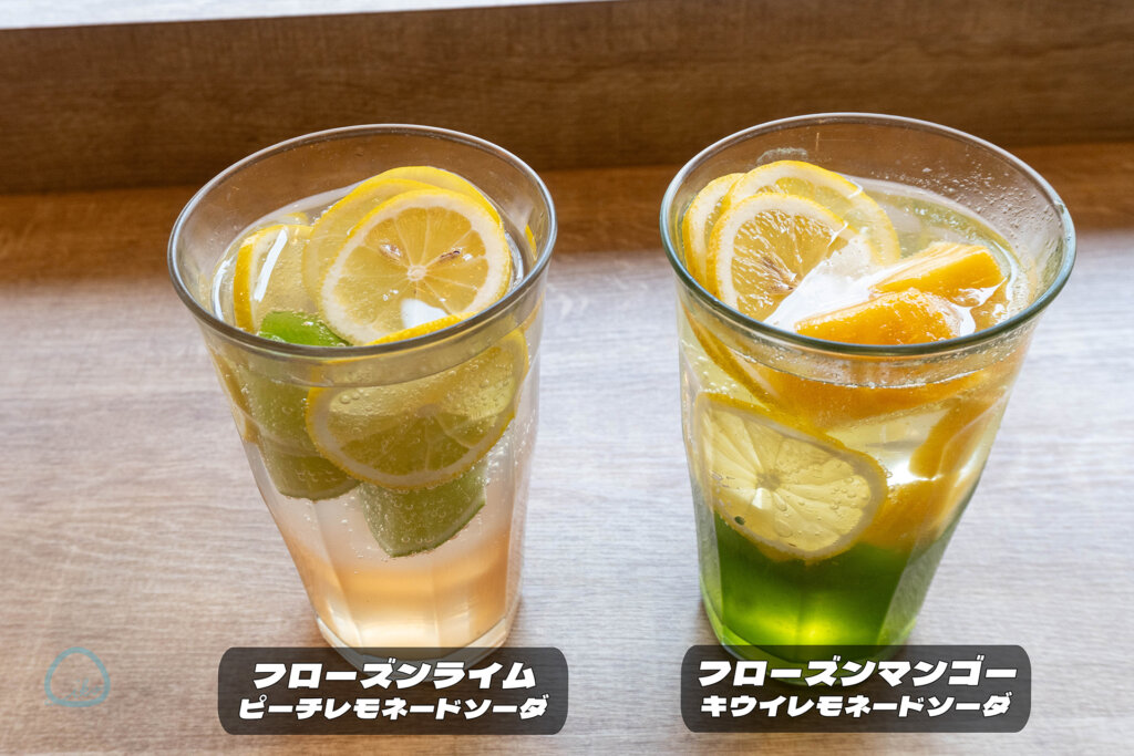 これからの季節にもぴったりな限定ドリンク《フローズンライム・ピーチレモネードソーダ》《フローズンマンゴー・キウイレモネードソーダ》もあります!