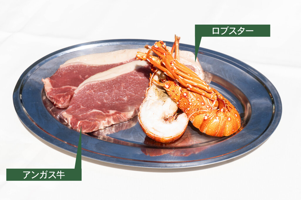 アンガス牛のステーキ150g×2枚と、ボイルしたロブスター1尾をセットにした「アニバーサリープレート」を用意されています。