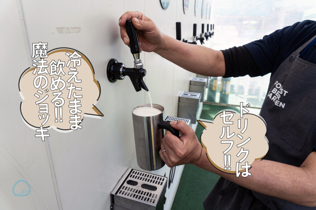 すべて1杯目からのセルフとなっており、樽ごと冷やせる特製冷蔵庫(ビールサーバー)を利用して、キンキンに冷えたビールを時間内に好きなだけ楽しめます! 真空二層構造の専用ジョッキでお楽しみあれ。