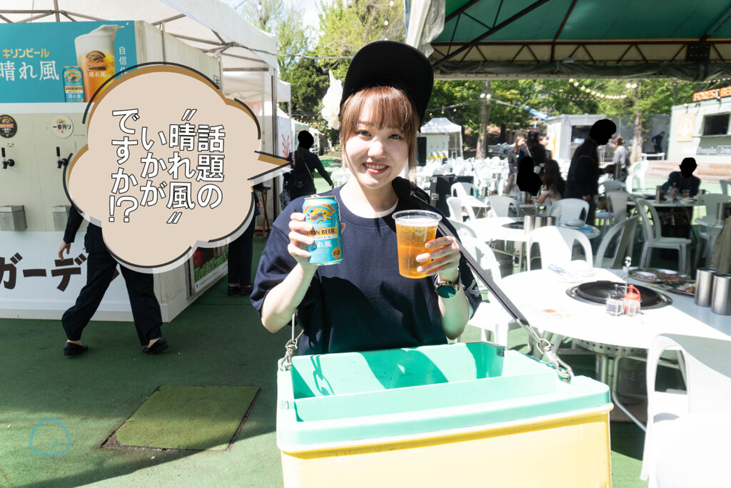 「晴れ風」の提供は特設サーバーではなく、缶のみ。会場中央付近に用意した貯蔵プール内から直接持っていくだけでなく……