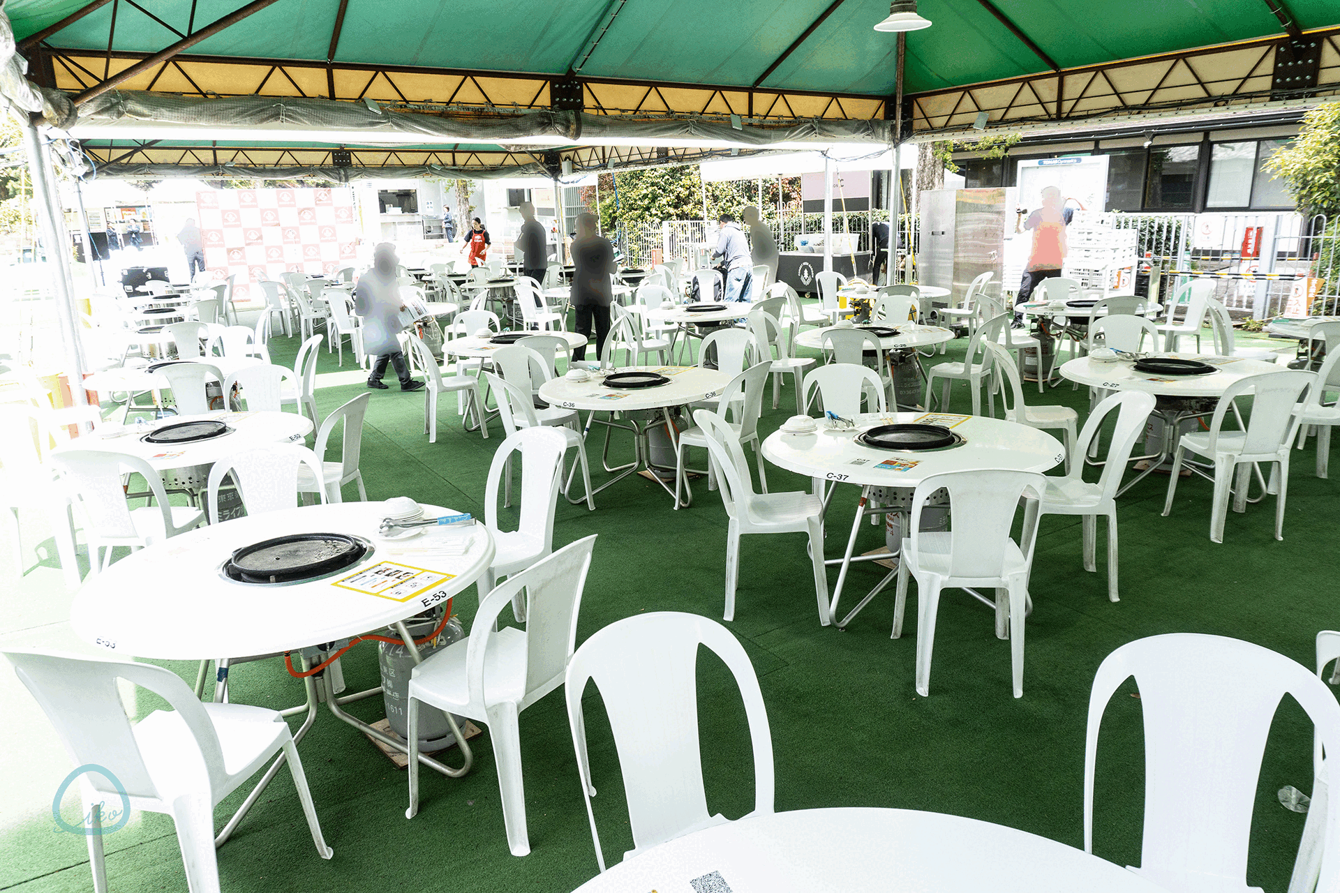 野外席+テント席あわせ、合計1000席用意。ラストオーダーは21:30と、夜遅くまで営業しています。夏場は虫が気になりますが、入り口付近に防虫スプレーが用意されています。*座席指定はできません。
