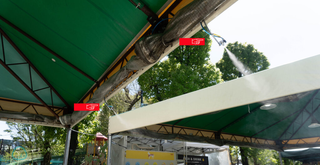 熱中症対策として、会場内にミストを降り注ぐ冷却装置を初導入。夏場も安心♪