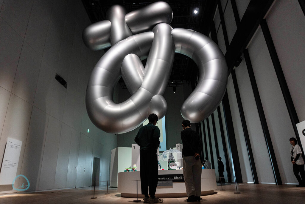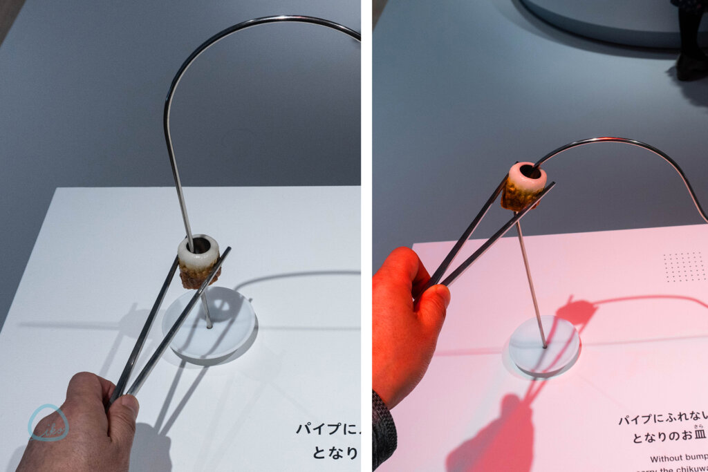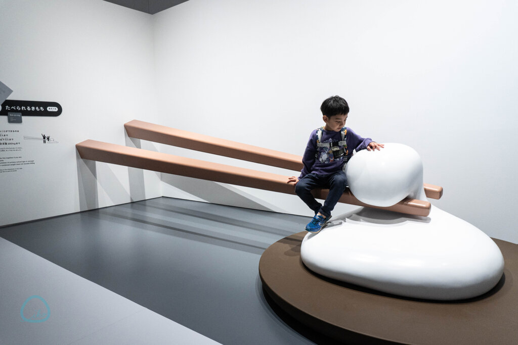 ユニーク展示満載の今回。巨大な箸につままれる巨大な餅といった、フォトスポットにも最適な展示も。一緒に食べられる気持ちを味わえるという、ユニークすぎる展示です!