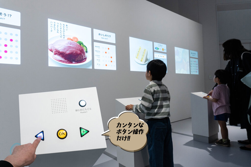 《おいしそう!?》は、対象メニューをボタンを操作してお好みの仕様に変更する体験コンテンツ。