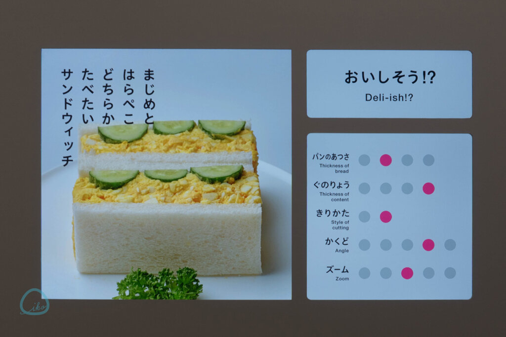 対象メニューは「ごはん」「ハンバーグ」「サンドウィッチ」「プリン」の4つ。写真はそのうちの「サンドウィッチ」。パンの厚さや具の量などを調整し、理想のおいしいを形にしようというものです!