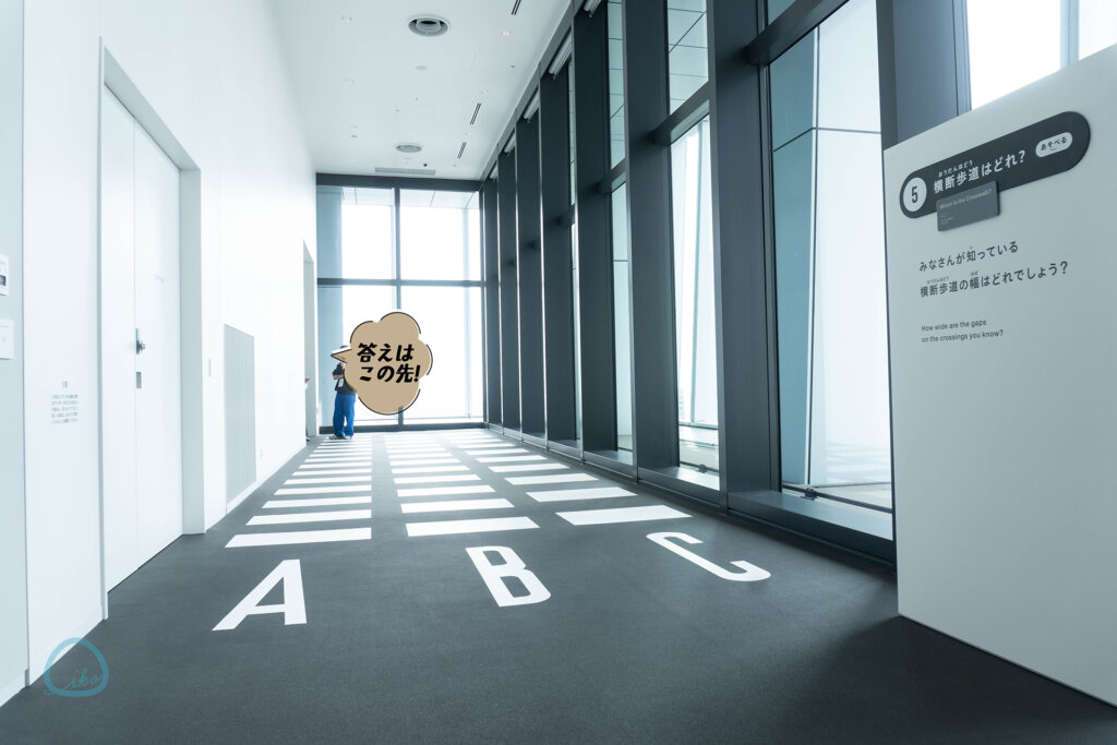 《横断歩道はどれ?》は、日常生活で頻繁に出会う横断歩道。その間隔をA・B・Cの3つから当てるというもの。改めて言われるとちょっと……という方も多いはず。全部歩いて確認あれ。