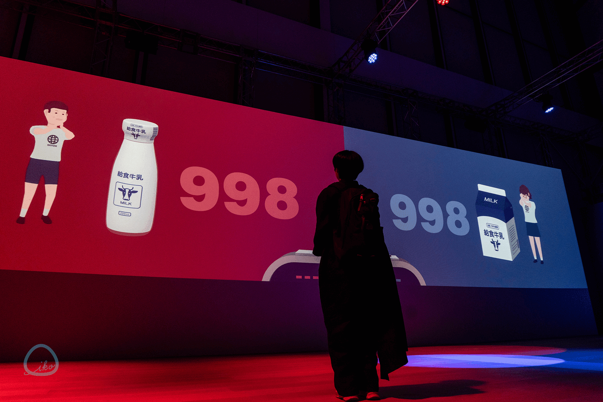 映像を使った展示も複数あり、その1つがこの《デザインどっちでショー》。スクリーン上で展開されるディベート(議論)を元に、私はこっちという方を選ぶショー的コンテンツ。