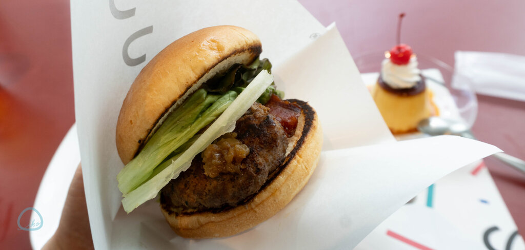 左から)「のせる、はさむ、たべるバーガー/通常サイズ」1800円、「きみのてづくり なめらかプリン」550円