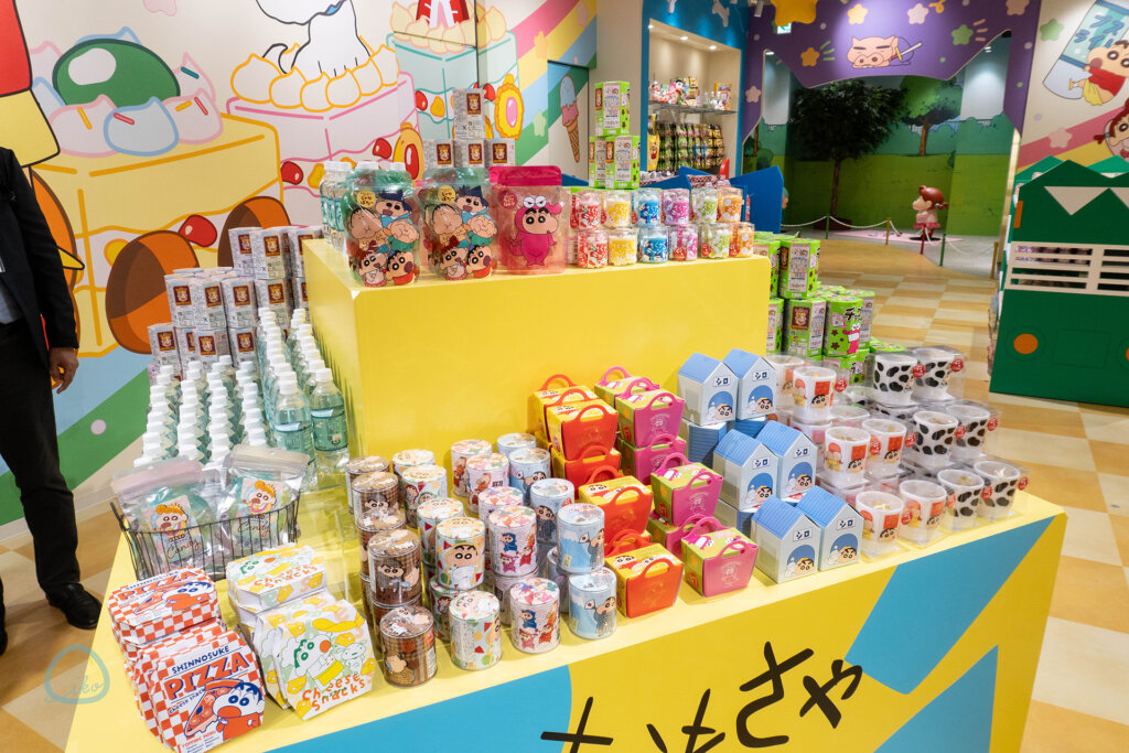 今回誕生した《クレヨンしんちゃんオカシナもぐもぐワールド》は、バラエティに富んだグッズ類はもちろんですが、既存店とは大きく異なり、「食(フード)」類の販売にもチカラを入れた新業態ショップです。