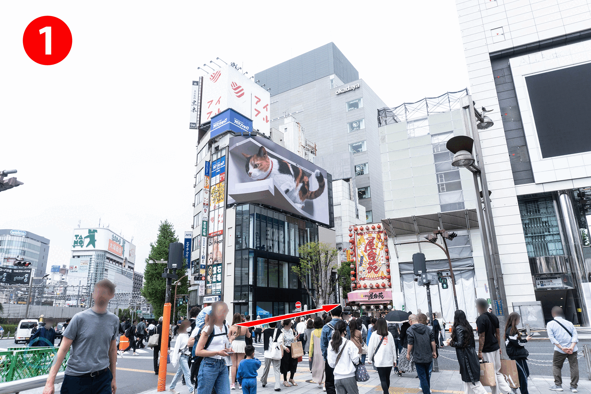 新宿駅・東口から、旧アルタと「巨大猫」の3D動画サイネージの間にある通りを、歌舞伎町へ向けて歩くと、左側にあります。