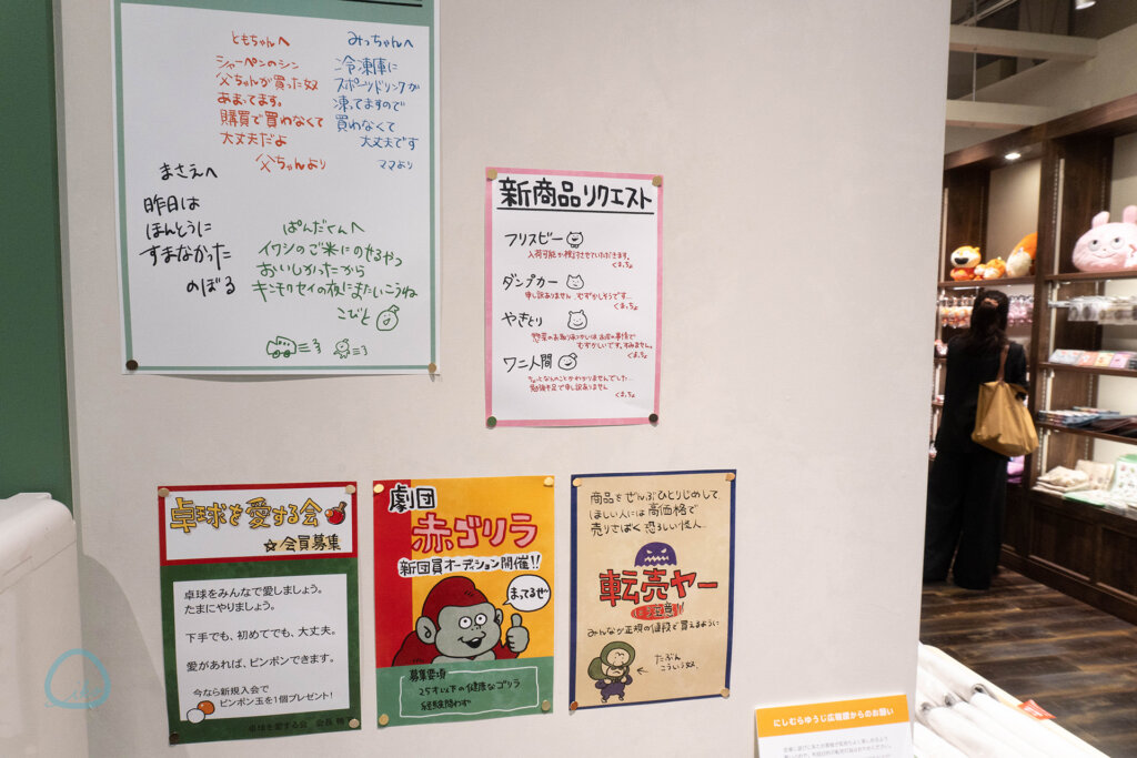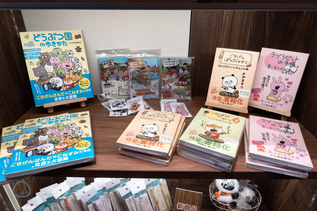 《にしむらゆうじ購買部》は、「ごきげんぱんだ」「こねずみ」「ラブラビット」など、にしむらゆうじさんが生み出したキャラクターのグッズ販売店のこと。