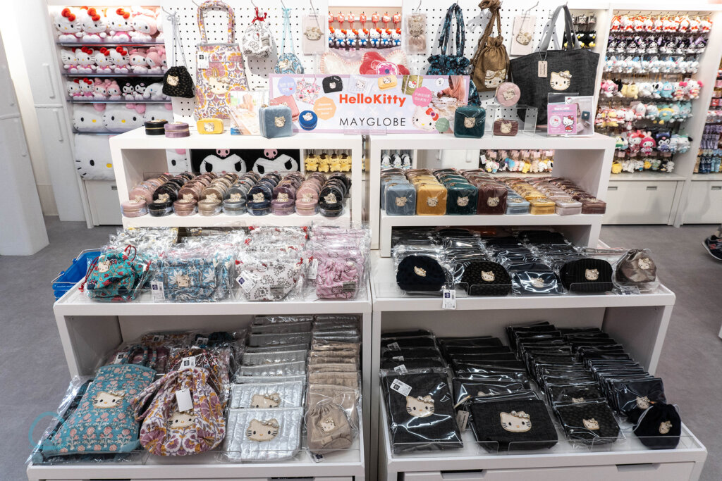 ワールドワイドな活躍を続けるハローキティ関連など、お馴染みのサンリオキャラクターのグッズも多数。日本の「和」を意識させるグッズもありと選びがい満点。