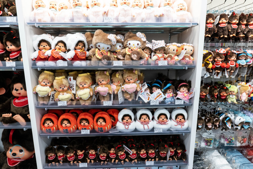 昭和世代にもファンが多い、息の長い人気を博しているキャラクター《モンチッチ》。様々なモンチッチのぬいぐるみを取り扱っており、ハローキティとのコラボなど、思わず「おっ!」となる珍しいグッズも扱っています♪