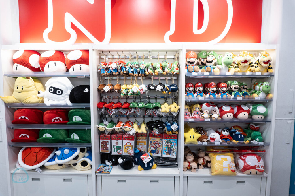 インバウンド人気も高そうな、スーパーマリオ関連のぬいぐるみや雑貨類も。