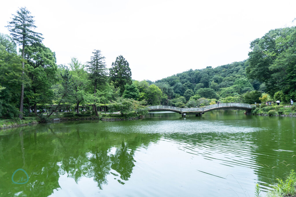 園中央に「薬師池」があり、そこにかかる「タイコ橋」からの眺めも開放的と、都心の喧騒を忘れるに最適なスポットです。