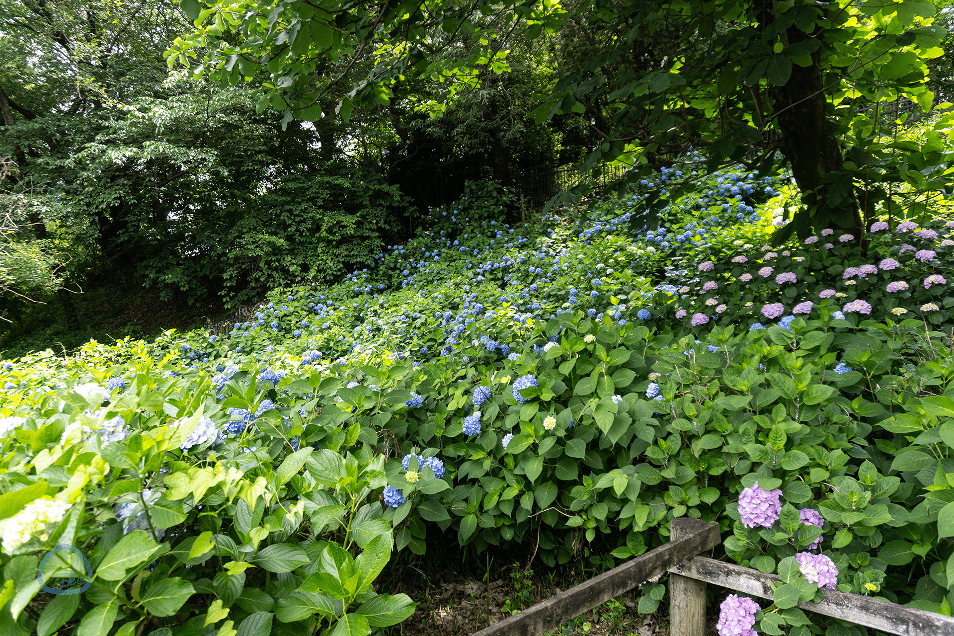 こちらも大きな公園ですが、花菖蒲はなくあじさいのみ。満開時で17品種約5000株のあじさいが楽しめます。