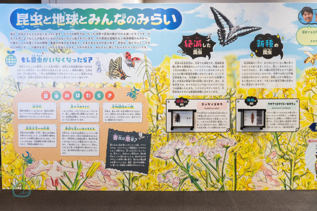 思わず「そうなんだぁ」と頷いてしまう、昆虫との共存の話や昆虫の進化の不思議、昆虫が持つ特殊能力に着目した“科学視点”で特性を紹介したパネルといった、興味深い展示も複数あります。