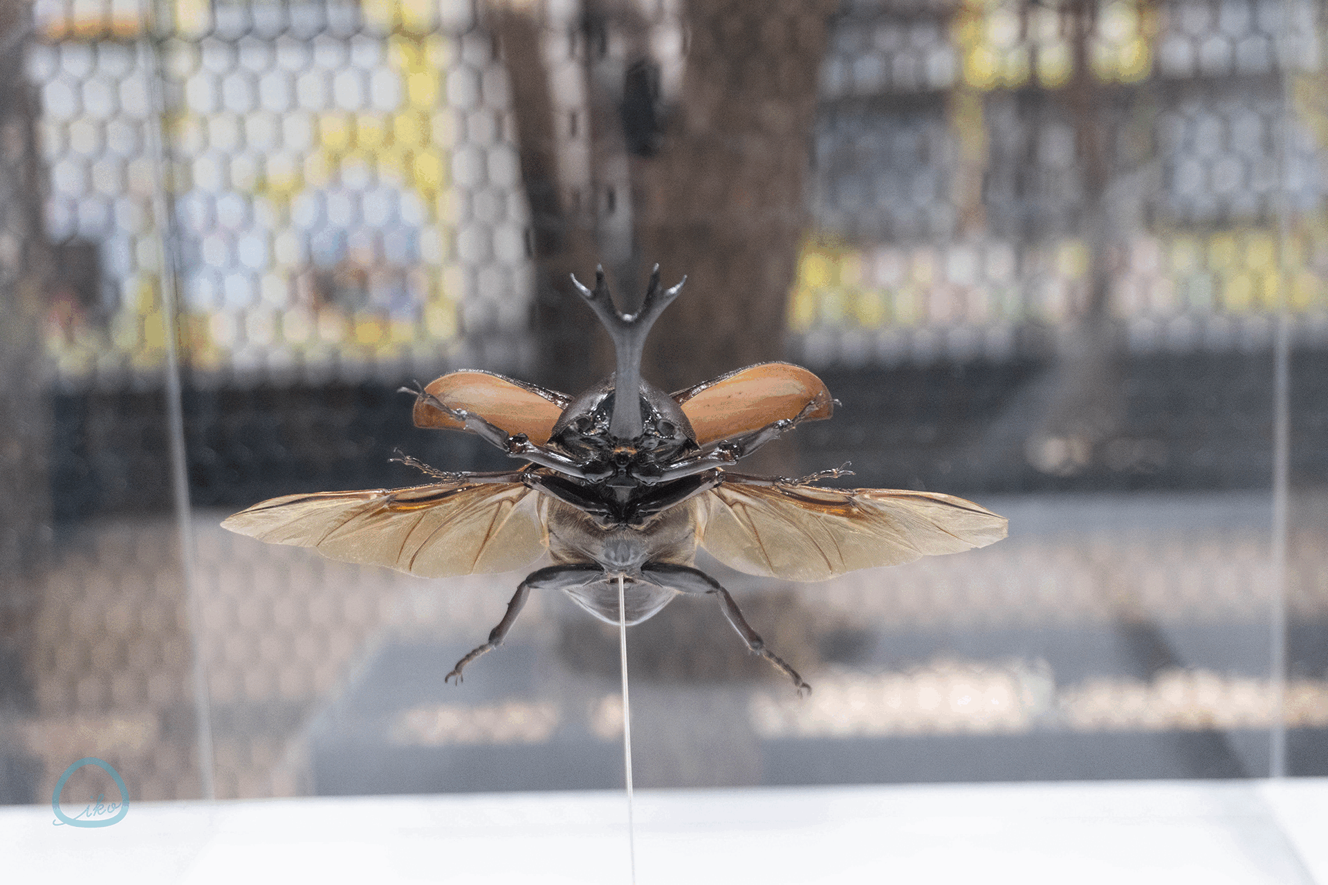 カブトムシなど、昆虫たちを360度の角度から観察できる“回転”展示もあり。
