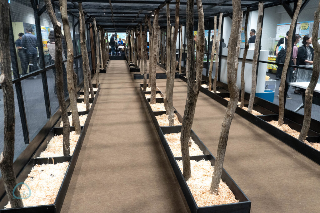 全長7,8mの檻の中では、なんと300匹あまり(!)のカブトムシが放し飼いに!