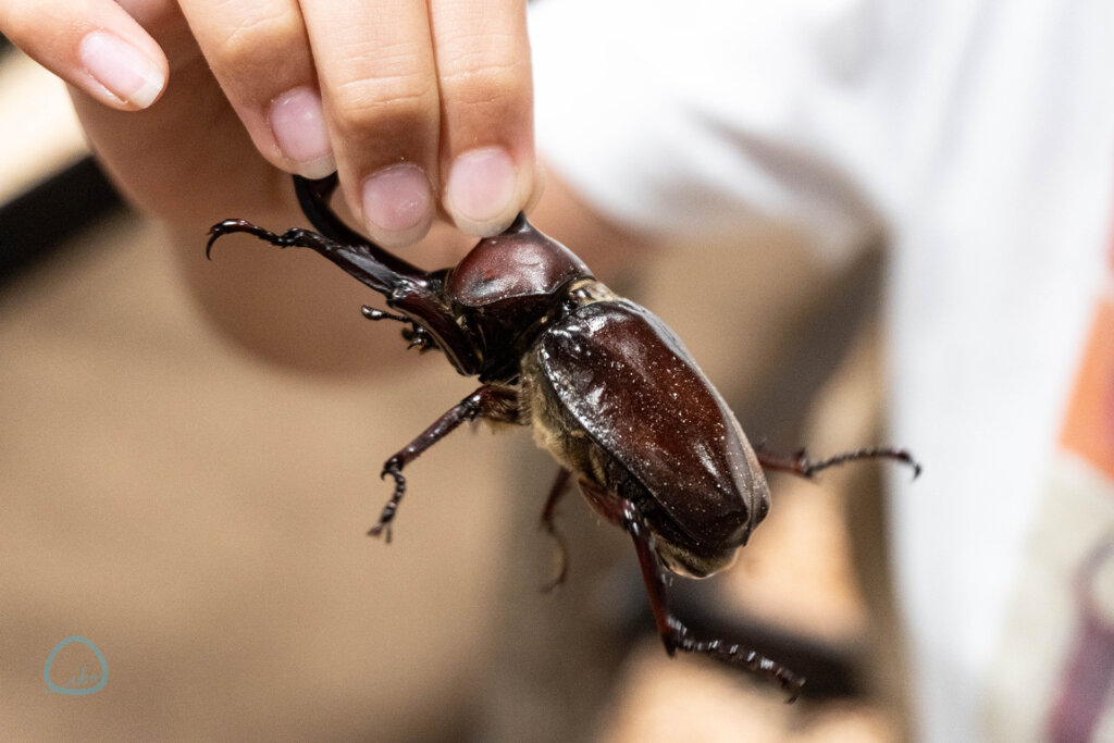 触るコツを教わって、子どもたちみずからカブトムシと触れあうことができるんです。