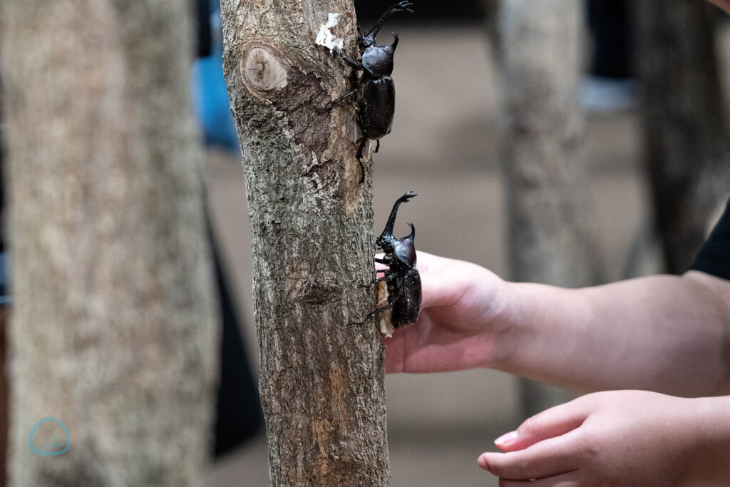 子どもたちにも大人気の、世界でもっとも全長が長いカブトムシとされる「ヘラクレスオオカブト」の生体が不定期で登場! 運がいいと、一緒に写真撮影ができるんです♪