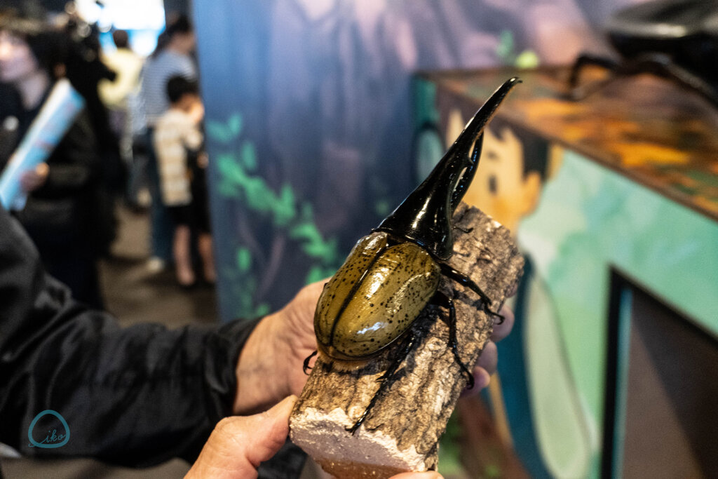 《大昆虫展》のキラーコンテンツとして大いに賑わうのが、生きたカブトムシとふれあえる「ふれあいの森」と呼ぶお触りコーナー。