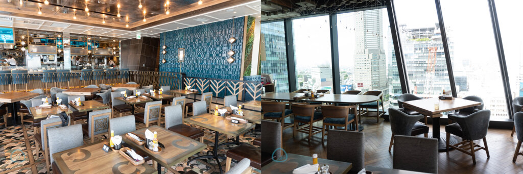 お店は13Fにあるため、眺望も抜群。店内はスペインのビール酒場を模した装飾となっているそう。