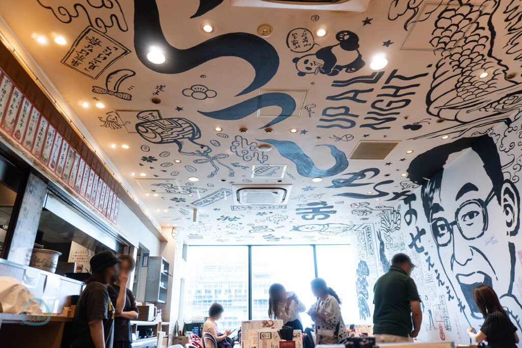 たまちゃんは店内も凄い! 壁や天井には、こだわりの“ごちゃ混ぜ感”のあるイラストが。直接描いたもので、創業者の顔や渋谷にちなんだイラストなど、見ているだけでも楽しくなります♪