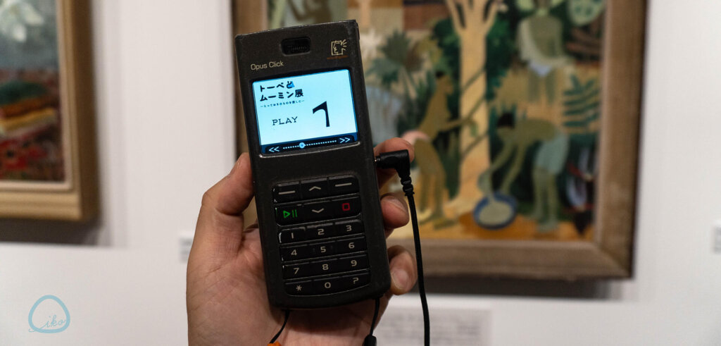 会場の解説だけでは分からない、トーベとその仕事について聞ける「音声ガイド」は、写真の会場レンタル版が650円、アプリ版が700円。