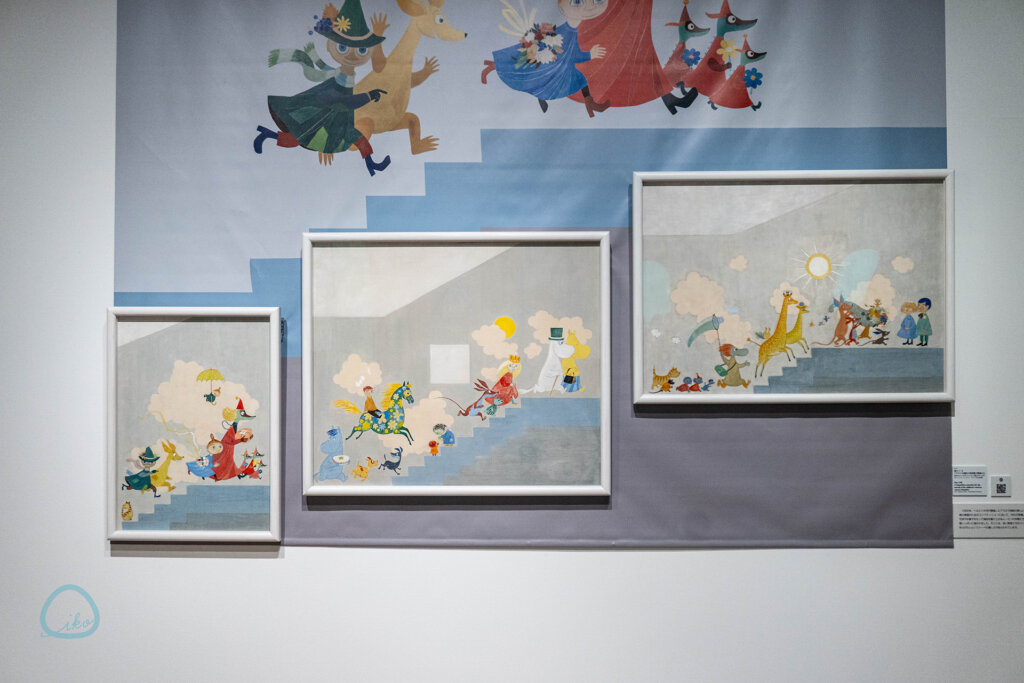 メインビジュアルに採用された自画像とムーミンたちとのコラボ作品の原画は必見!