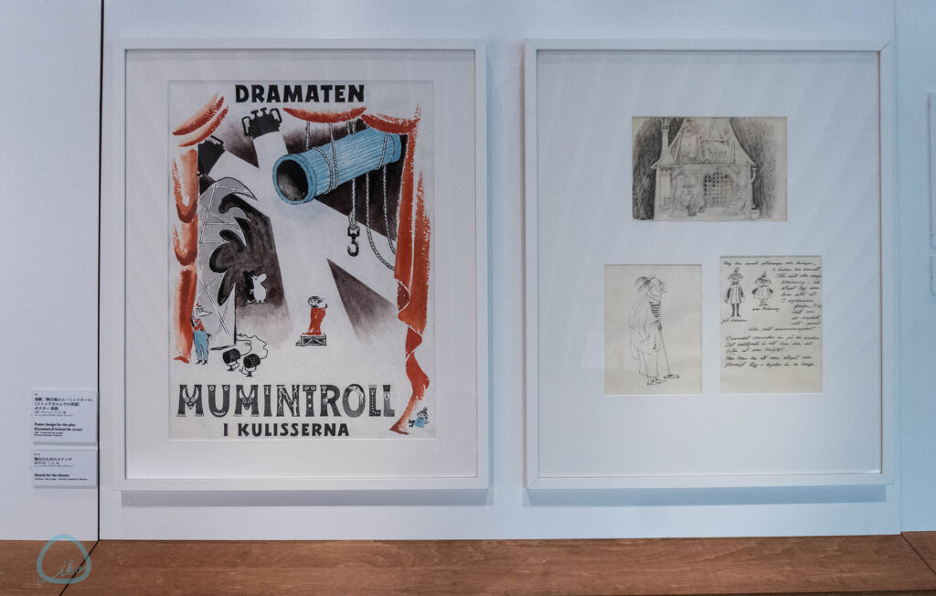演劇好きだったトーベは、ムーミンを題材にした野心的な舞台も手掛けており、自作『ムーミン谷の夏まつり』を題材とした「ムーミン・オペラ」の制作に携わった。会場では写真のポスターのほか、公式プログラムデザインの原画を展示。